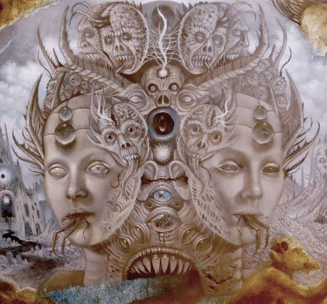 A million colorful shades of gratitude go out to Drew Roulette for letting me run with it, having at first resulted in the imagery for two KA Opperman poems: In Fits of Wildest Dreaming, and Absinthia. Drew's vivid art also accompanied two poems by Sheikha A: Walking on Water and Moon-Tropes. His unique style then fit extremely well for poems contributed by both John Shirley (Wordless Whisperer) and the late Johnny Strike (The Sad Tale of Suzy Yen). Lastly, Drew's singular vision worked perfectly at both underscoring a sense from my own poem The Creeping Glass in addition to complementing Gene Stewart's closing piece, Aeaea's Moon, in subtle and effective ways. For those of you unfamiliar with Drew's fantastical talent for painting, visit his website and check out what he has in stock. Take note: Drew plays bass for one of the best modern alternative rock bands out there, Dredg from Los Gatos, California. If you haven't listened to their uplifting signature style of heavy alternative music, head over to YouTube and check any song of theirs. I've seen them live at least ten times, and they always deliver among the best concerts I've ever witnessed. All of their albums are amazing works of sonic art. I urge everyone to catch up with Dredg, if you haven't already.
